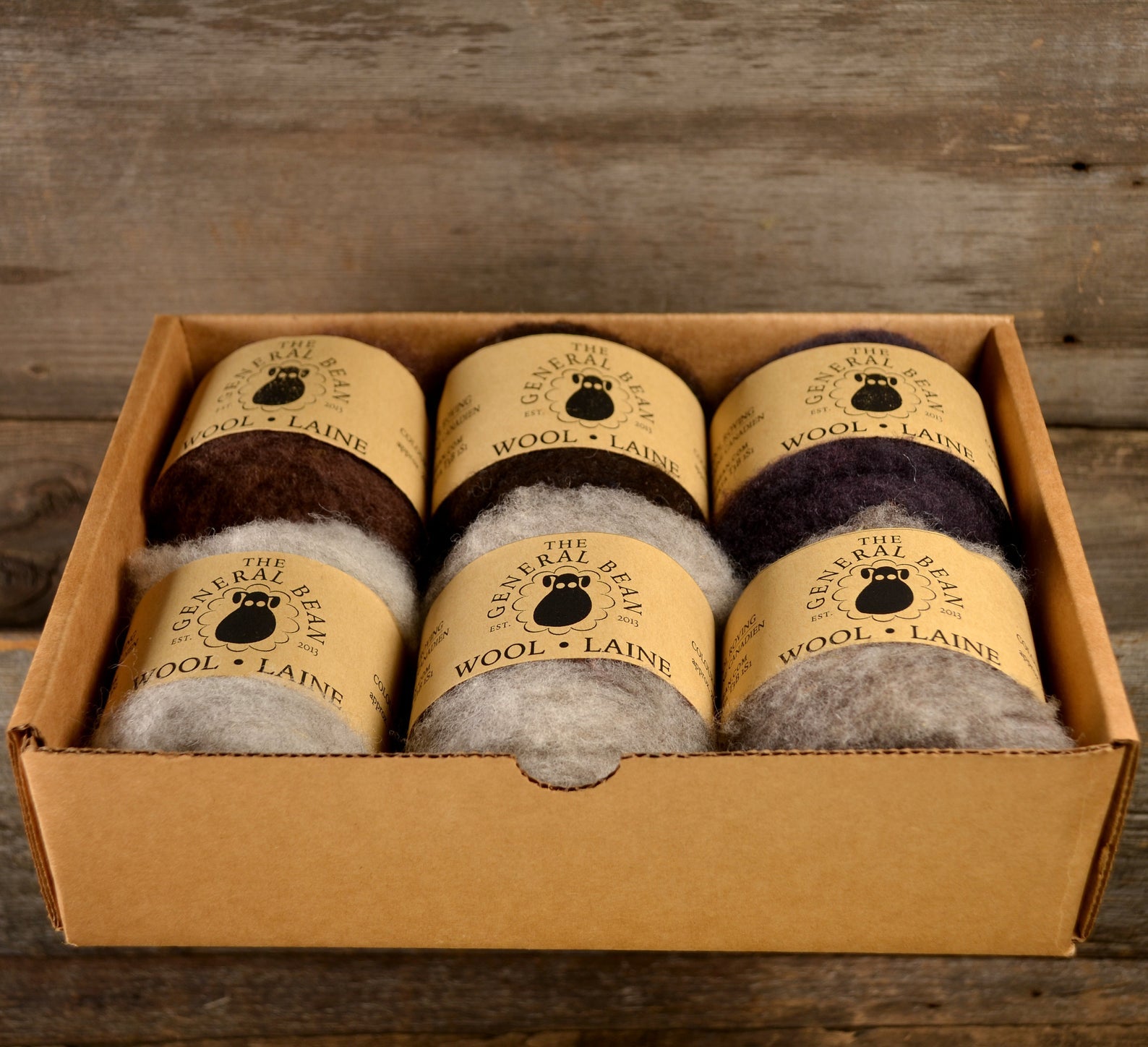 Our wool is all sourced from a small Canadian mill who uses local wool from Western Canadian wool. They process the wool with organic soaps, and minimally process it so their is no harsh chemicals and bleaches used. All of the wool is processed on vintage equipment from the 1800’s. Because the wool is minimally processed you will find bits of straw within which add character.